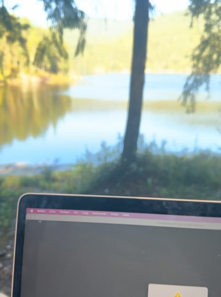 Dette er kraften i å jobbe digitalt. En laptop, litt kaffe, og et stille vann kan være alt man trenger for å finne fokus og inspirasjon.