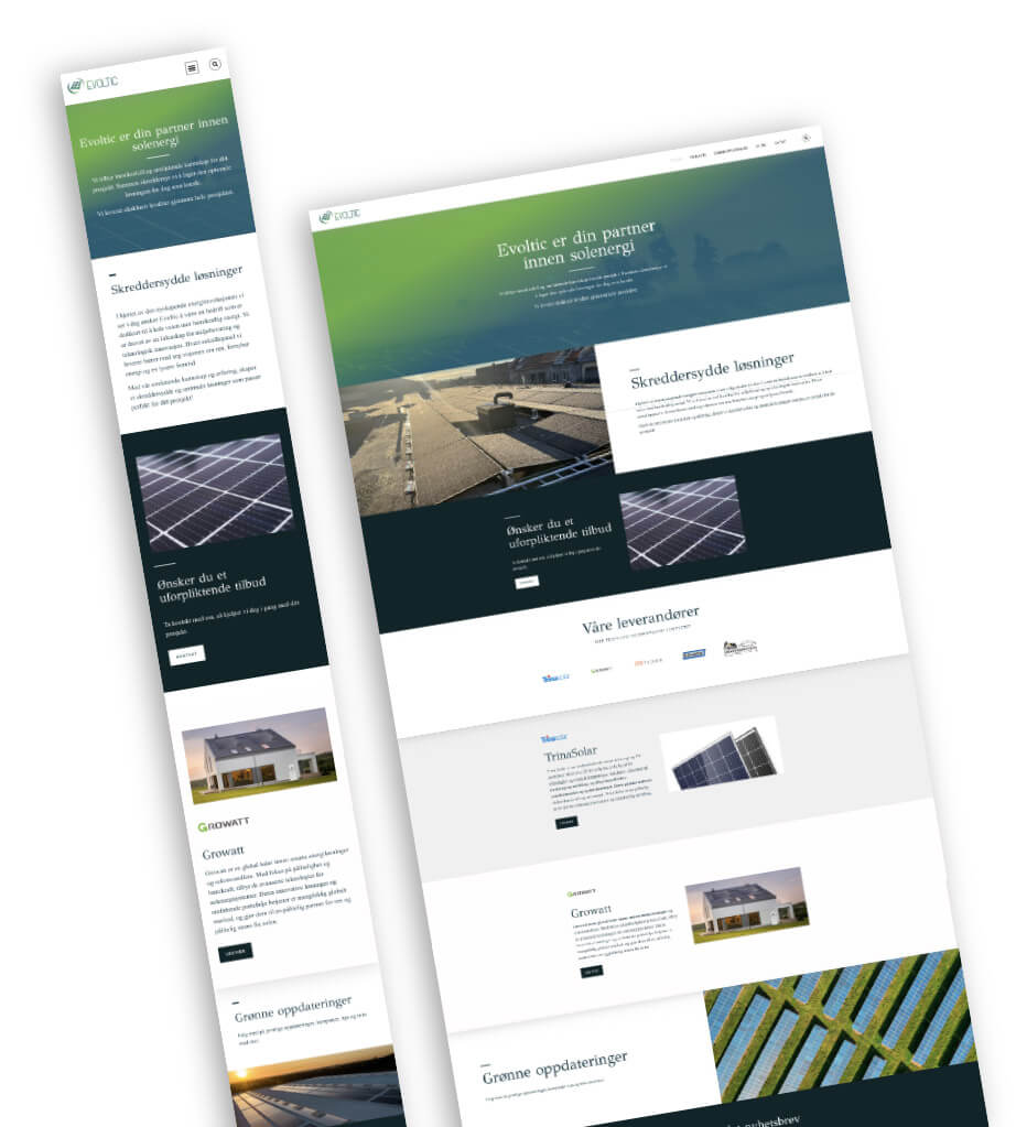 Når Evoltic AS, en fremtidsrettet bedrift innen solcelleindustrien, skulle styrke sin digitale tilstedeværelse, ble Voxe valgt som partner. Målet for Evoltic og Voxe var klart: å reflektere Evoltics fokus på bærekraft og innovasjon gjennom en engasjerende og moderne visuell identitet.