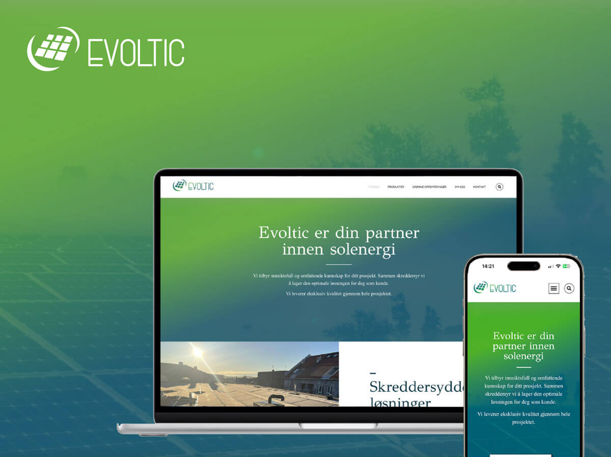 I 2023 ble Evoltic AS etablert med en klar visjon om å lede veien mot bærekraftig energi gjennom innovative løsninger innen solcelleindustrien. Da Evoltic trengte en sterk digital tilstedeværelse som kunne gjenspeile deres banebrytende arbeid, valgte de Voxe til å utvikle både deres responsive nettside og nye logo.